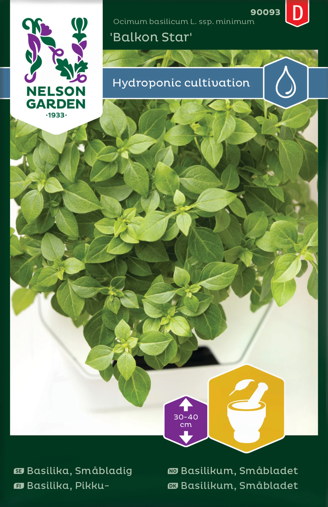 Sehr gute Sorte für den hydroponischen Anbau. Kugelförmig mit kleinen grünen, aromatischen Blättern. Wird wie normaler Basilikum verwendet. Kann auch in Erde angebaut werden.