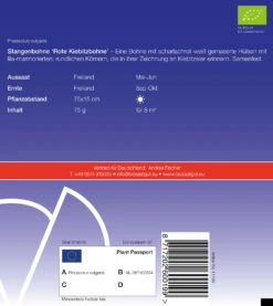 Eine äußerst feine Filetbohne ( Sortierung 6,5 < 8 mm Durchmesser) mit einheitlichen, 13 – 14 cm langen, schönen, tiefgrünen Hülsen. Samenfest.