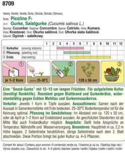 Eine dunkelgrüne, gemischt blühende ca. 9 cm lange Einlegegurke für den Freilandanbau. Hokus ist eine stark wachsende Einlegegurke mit einer langen Erntezeit. Die Sorte ist resistent gegen das Gurkenmosaikvirus.