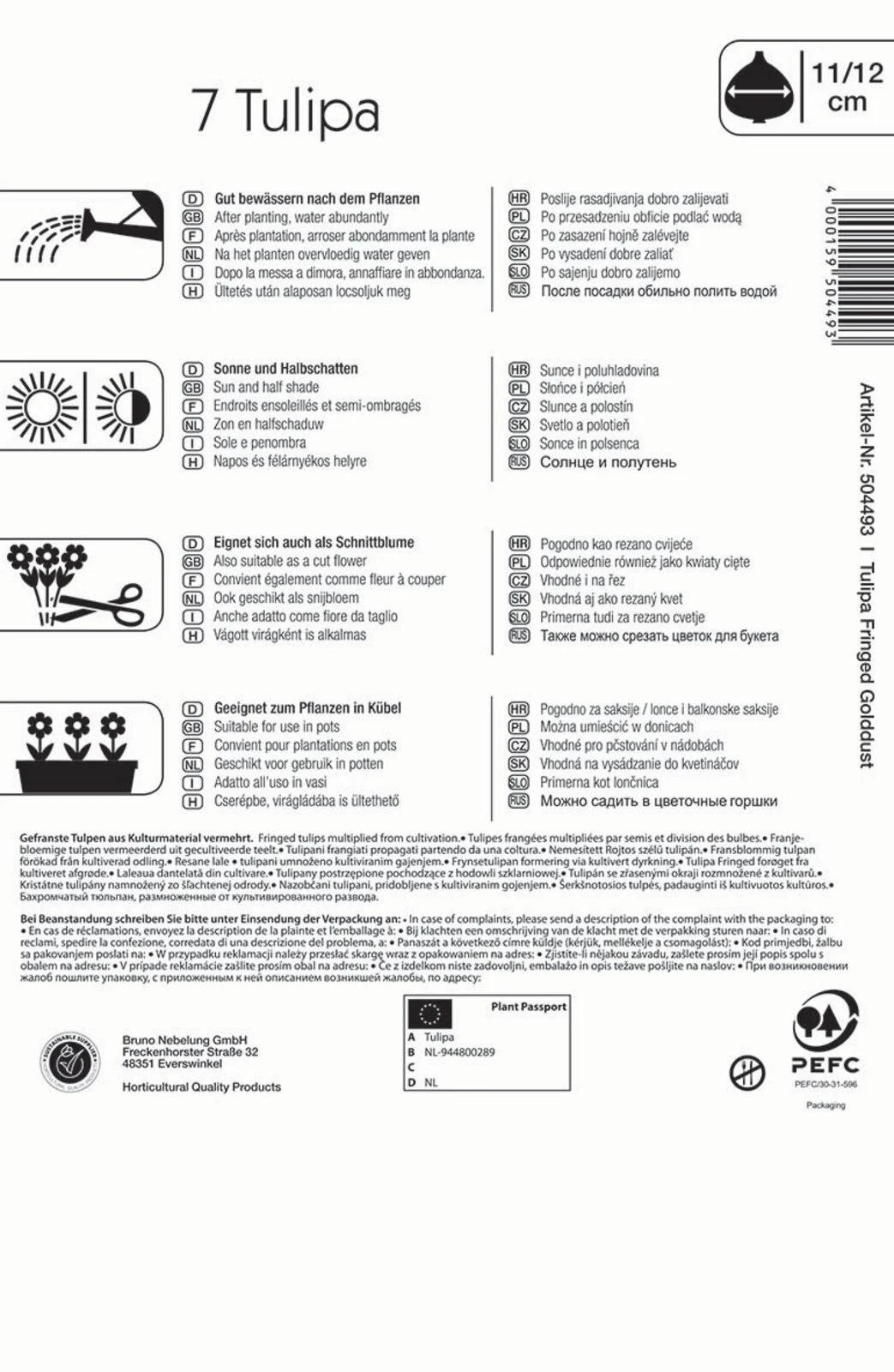 Ein wahres Blütenfeuerwerk bietet die Gefranste Tulpe ‚Golddust‘ mit ihren roten Blütenblättern und gelben Rändern. Ihre Wuchshöhe von ca. 35 cm lässt perfekt eine Kübel- und Topfbepflanzung zu. Selbstverständlich ist aber auch eine Anzucht im klassischen Frühlingsbeet möglich, idealerweise in sonniger oder halbschattiger Lage. Die Blüten zeigen sich im Mai und machen auch in der Vase eine gute Figur.