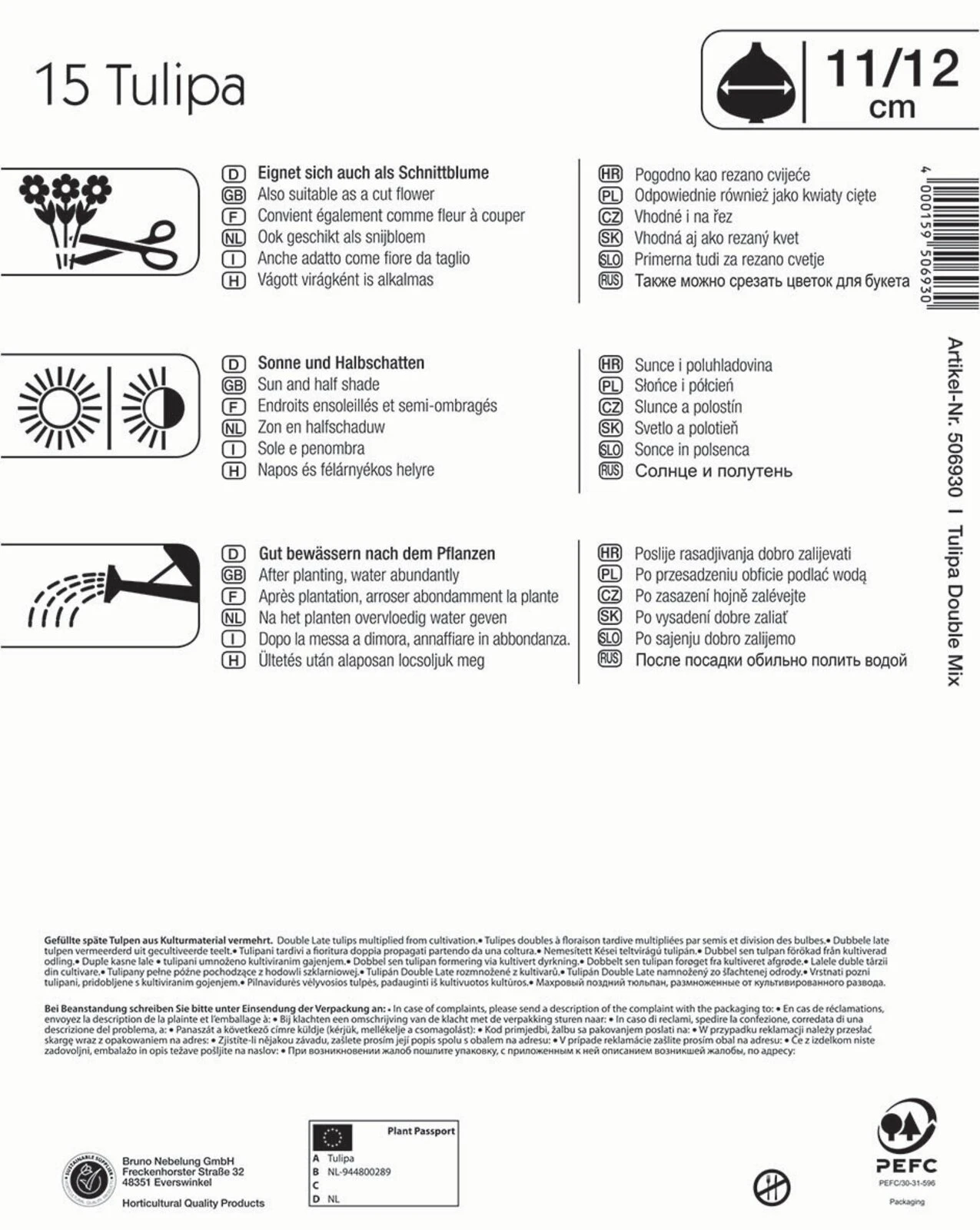 Ein buntes Blumenmeer entsteht in Ihrem Garten mit dem Mega-Pack „Gefüllte Tulpen Mischung“. Die darin enthaltenen Tulpen können sowohl ein- als auch zweifarbig sein und beispielsweise wunderschöne gelbe oder rote Blüten hervorbringen. Die Blumen erreichen eine Höhe von 40 cm und blühen zwischen April und Mai. Am besten gedeihen sie an einem halbschattigen oder sonnigen Standort mit ausreichender Wasserversorgung. Wenn Sie möchten, können Sie die Blumen auch schneiden und damit einen wunderschönen Strauß gestalten.
