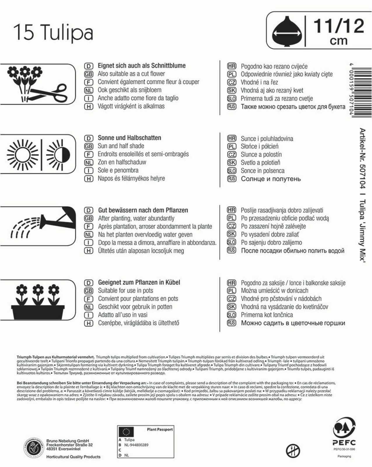 Mit dem Mega-Pack „Triumph-Tulpen ‚Jimmy‘ Mix“ von Kiepenkerl können Sie Ihr Frühlingsbeet im April in die Farben Rot, Orange und Rosa tauchen. Die Mischung ist benannt nach der zuerst gezüchteten Sorte ‚Jimmy‘, die orange blüht. Die verschiedenen Sorten erreichen eine Wuchshöhe zwischen 30 und 40 cm. Sie lieben sonnige oder halbschattige Plätze im Garten und können im Beet wie im Kübel problemlos kultiviert werden. Für attraktive Frühlingssträuße können Sie die Tulpen aufgrund guter Schnitteignung ebenfalls verwenden.