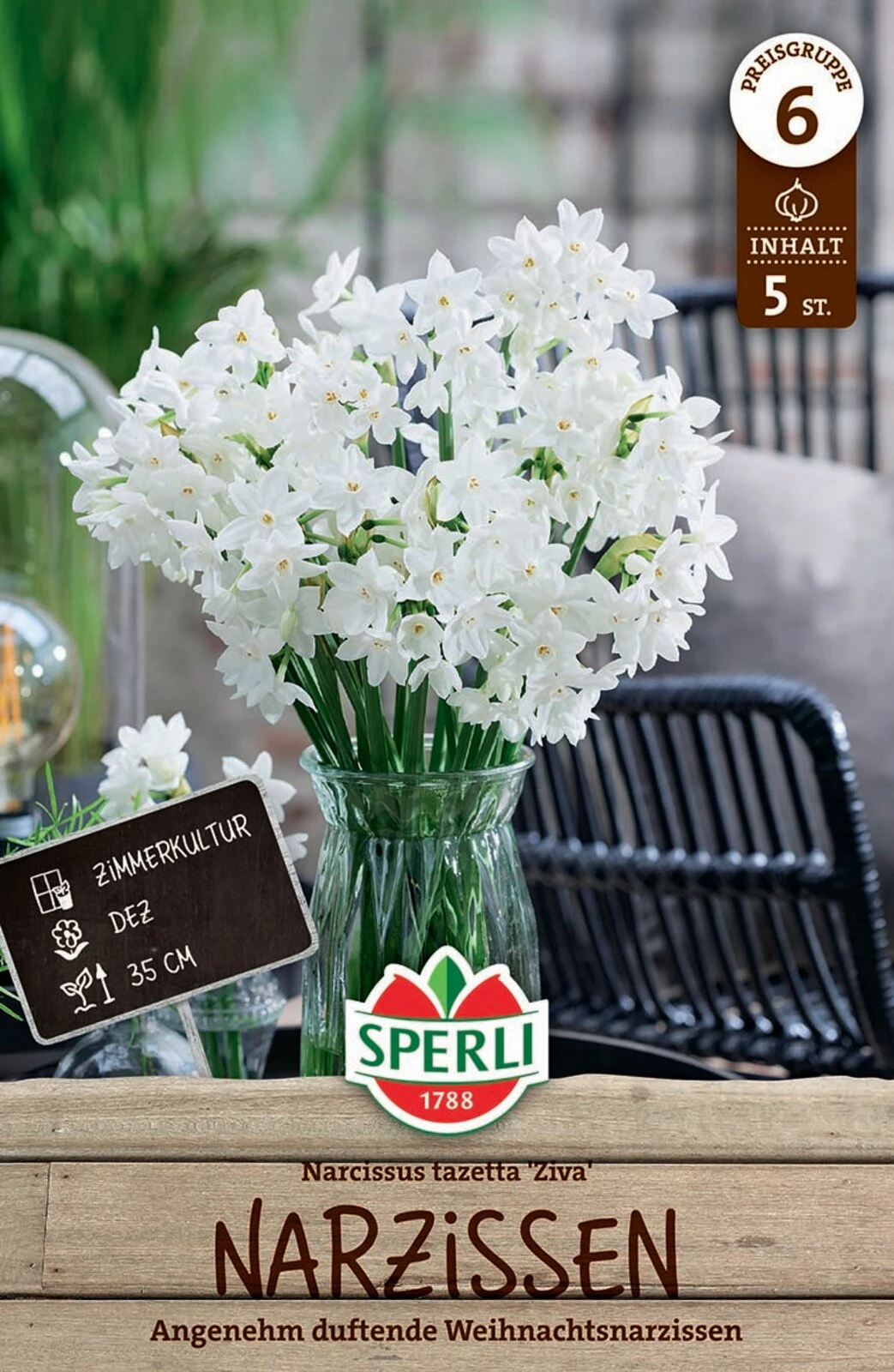 Auch als Weihnachtsnarzisse bekannt, weil man sie mühelos im Zimmer zur Blüte bringen kann. Bis zu 10 weiße Blüten pro Stiel. Duftend. Möglichst kühl und hell kultivieren. Blüht schon nach 4 – 6 Wochen. Diese Narzisse ist nicht frosthart und kann nicht im Garten kultiviert werden.